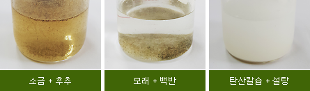비커의 옆면에 붙입니다. 그래야 혼합물이 튀지 않아요.